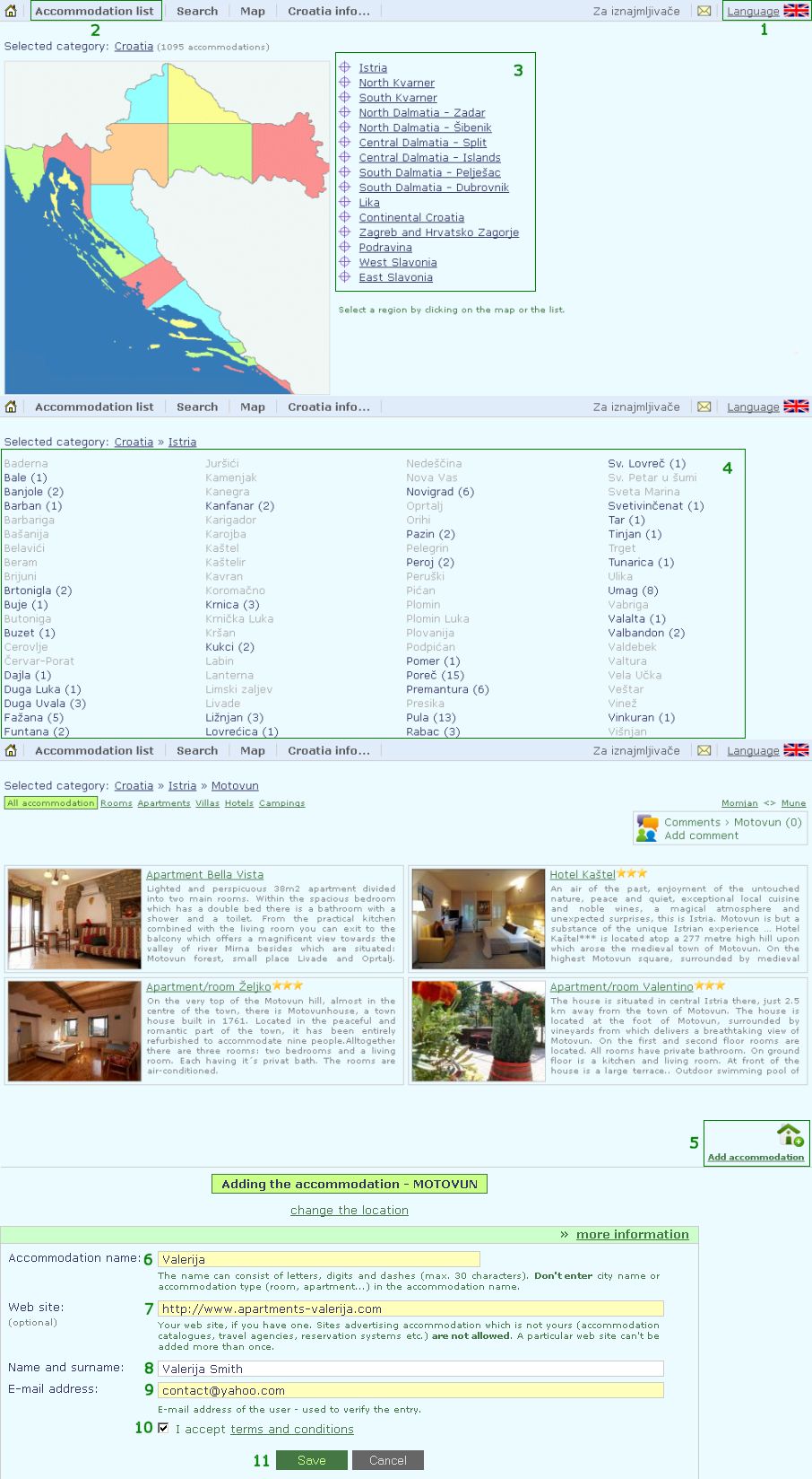 Accommodation list